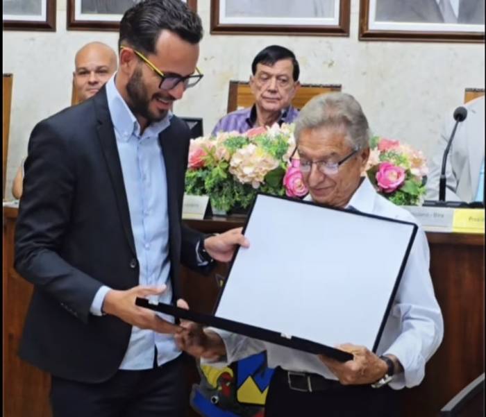 A honraria foi concedida conforme decreto de autoria do vereador Heldreiz Muniz em reconhecimento às contribuições prestadas ao município.