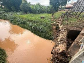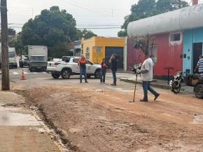 A elevação do nível dos córregos que cortam a zona urbana causou o transbordamento em diversos pontos, interrompendo temporariamente o tráfego de veículos.
