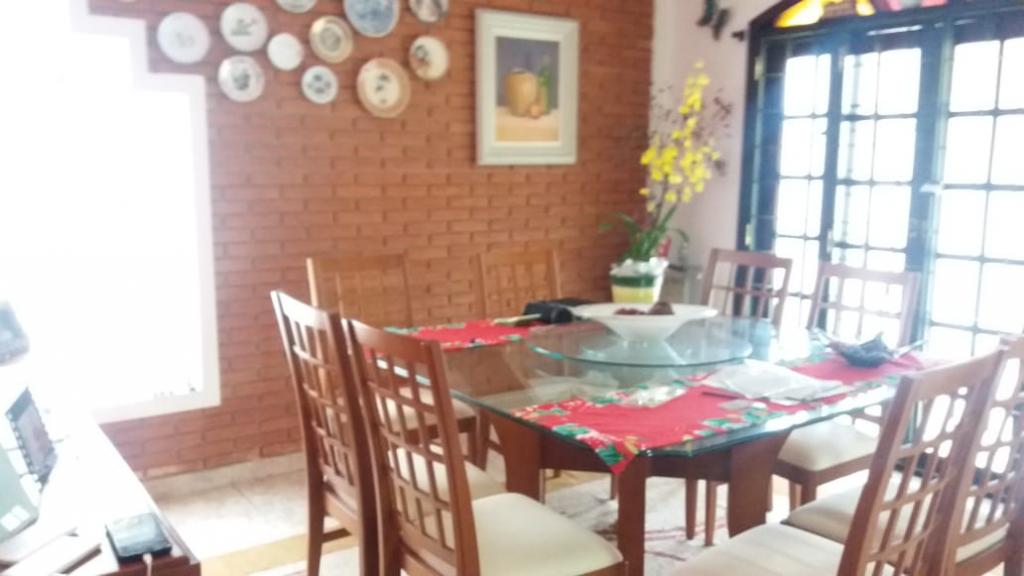 4 dormitórios com armários, (sendo 2 suítes com closet), sala de estar com lareira, jantar, tv, lavabo, copa cozinha planejada, edícula com dormitório, escritório e banheiro, área gourmet com forno, churrasqueira e vestiário, amplo quintal e garagem para vários carros.