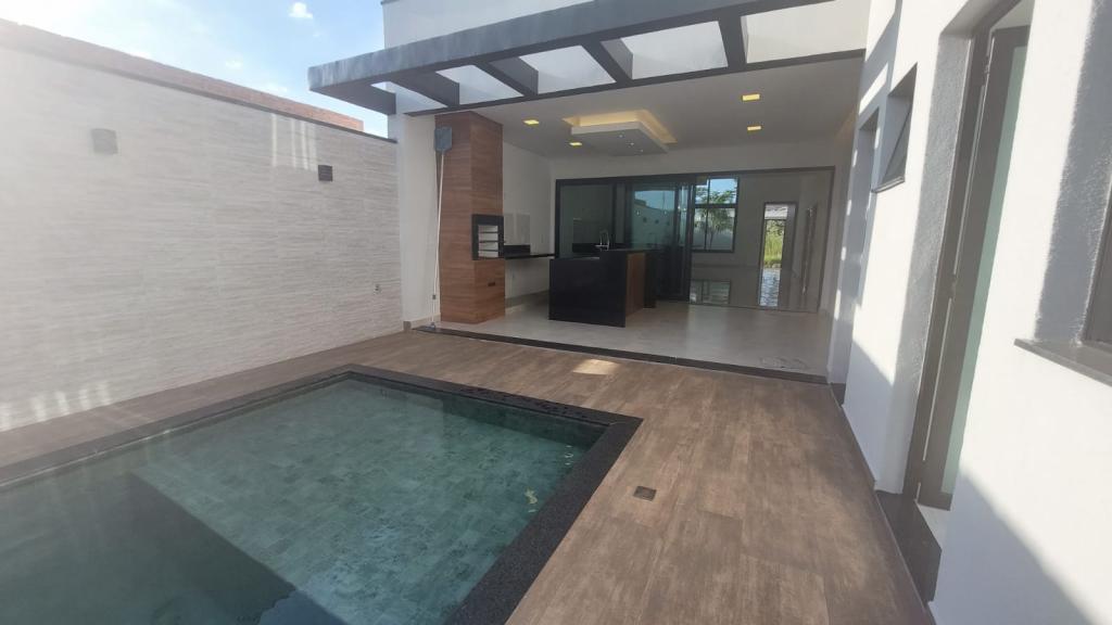 Casa nova linda com 3 suítes, (sendo 1 com closet). roupeiro, sala de jantar estar e cozinha integrado com pé direto de 5 metros, jardim de inverno, área gourmet com banheiro lavanderia, piscina e 2 garagens. Projeto de iluminação diferenciado.