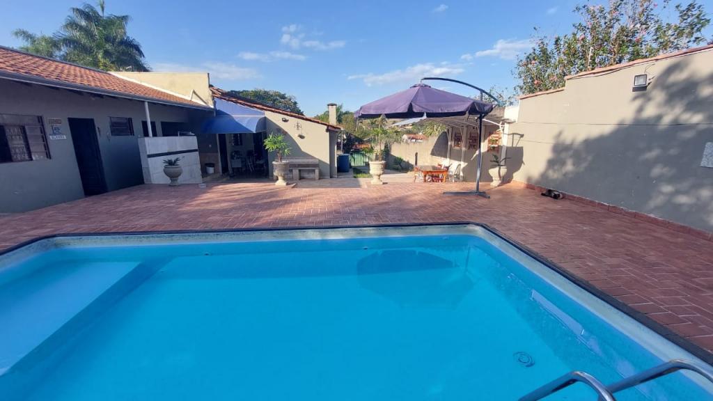 Casa estilo chácara com 2 dormitórios, (sendo 1 suíte), sala copa cozinha integrado, toda avarandada, área gourmet, ampla área de lazer com piscina, vestiário, quarto de despejo, lavanderia, pomar. Troca por imóvel menor valor com quintal, sem piscina