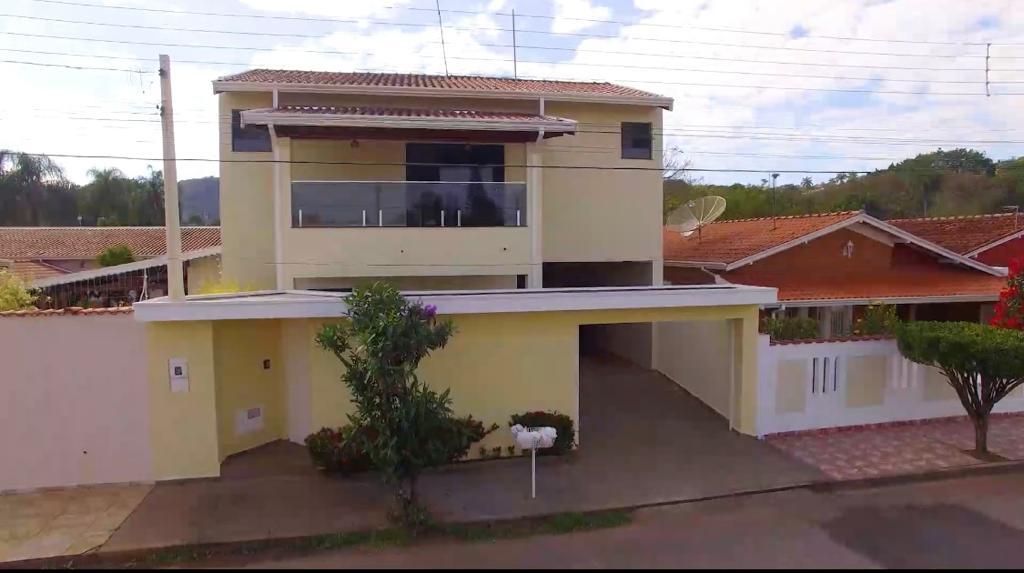 2 Suítes, Varanda nos fundos com vista pra Serra - 3x10 mts, Varanda na frente com vista pra Serra - 1,5x5mts, Sala ampla com bar, edícula, Banheiro com box e armários, Cozinha ( cooktop 5 bocas e forno embutido ), Lavanderia, área gourmet, Churrasqueira, Pia independente, Armários embutidos, Pergolado integrado com área da piscina, Piscina de 17 mil litros 3x7m², garagem p/ 3 carros com portão eletrônico. Aceita troca por terreno e carro