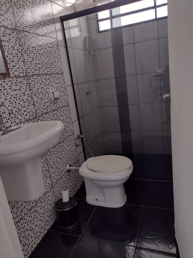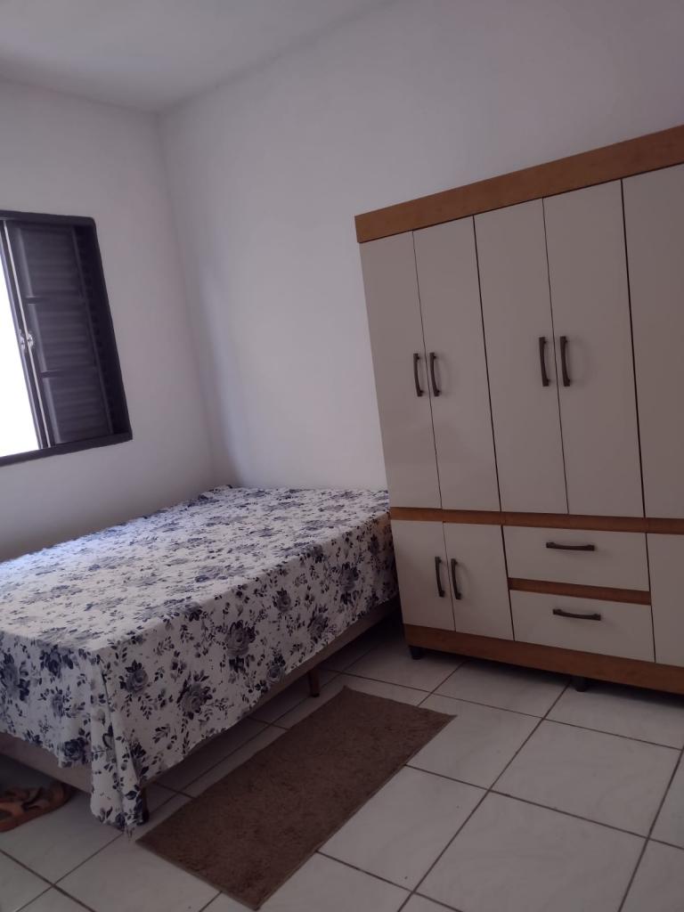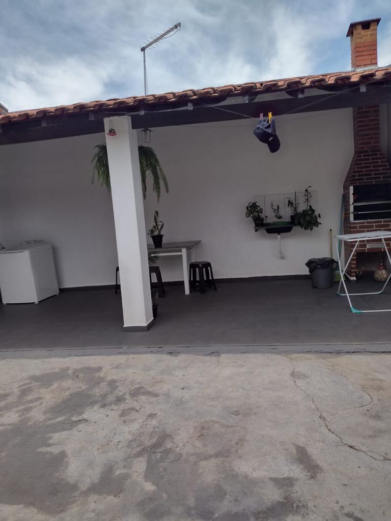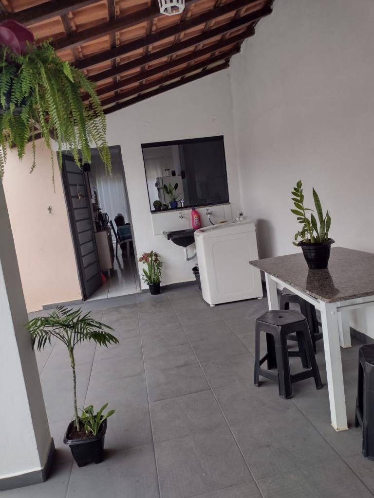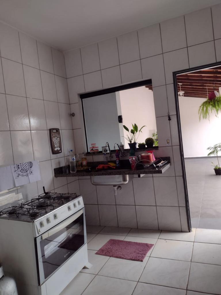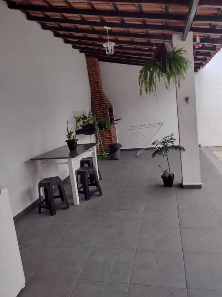 2 Dormitórios, 1 banheiro, sala, cozinha, área de lazer com churrasqueira, garagem 3 carros.
