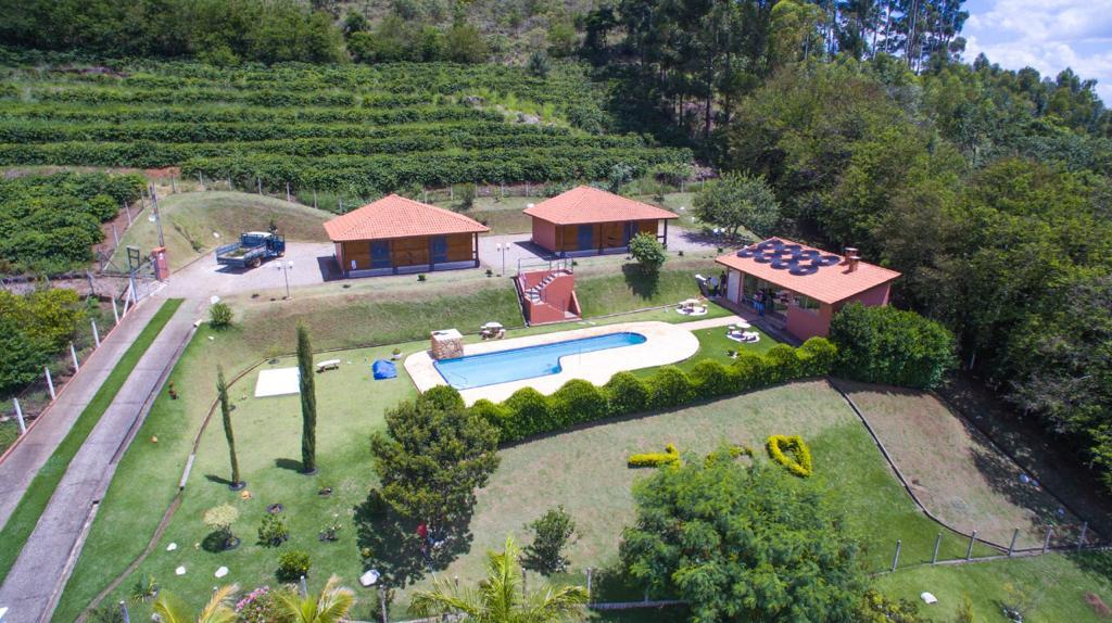 Casa sede, 1 suíte, sala de estar, banheiro, sala tv, cozinha, toda avarandada, lavanderia, deposito anexo com um salão de festa com banheiro, lazer 4 chalés completos com área gourmet churrasqueira e forno iglu, lago para pesca, quiosque para apoio a pesca, estrutura para trator agrícola em bloco de alvenaria completo com chapa com pé direito com 6 m, plantio de 20 mil pé de café arábico.