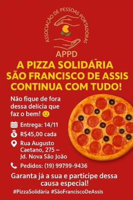 Venha participar da nossa Ação Solidária de Pizzas!