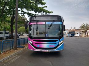 O veículo adesivado vai circular cada dia em uma das 10 linhas de ônibus do transporte urbano da cidade. Além disso, para marcar a campanha junto aos usuários de ônibus, o site da MoV São João foi colorido em rosa.