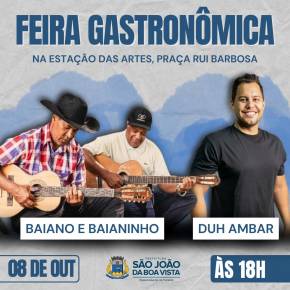 Na quarta-feira (8), a partir das 18h, a Praça Rui Barbosa recebe a Feira Gastronômica, com 66 expositores de alimentos, bebidas artesanais, artesanato e atrações infantis. O evento busca impulsionar pequenos negócios locais e criar novas oportunidades de geração de renda.