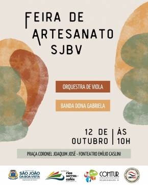 A programação se encerra no domingo (12), às 10h, com a Feira de Artesanato na Praça Cel. Joaquim José, no Fonteatro Emílio Caslini. Além da exposição de peças feitas por artistas locais, o público poderá assistir às apresentações da Banda Dona Gabriela e da Orquestra de Viola.