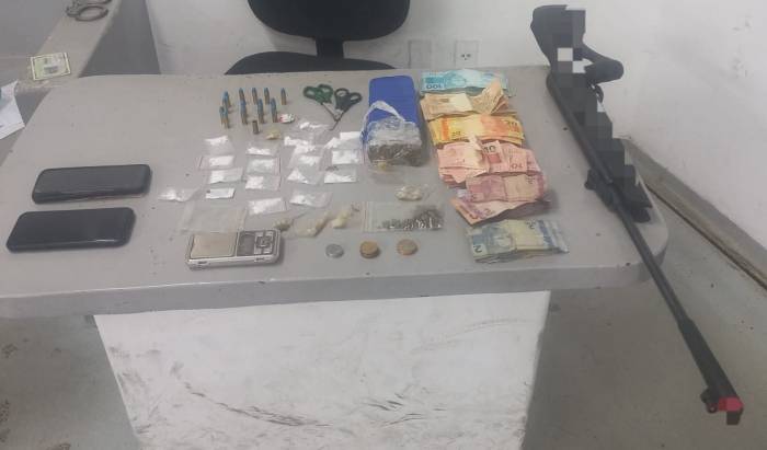 A investigação avançou quando a vítima indicou que a arma de fogo utilizada poderia estar escondida na casa do pai do autor. Com a autorização do genitor, os policiais realizaram buscas e localizaram um verdadeiro arsenal do tráfico, incluindo: Mais de 635 gramas de maconha 14 porções de cocaína idênticas às encontradas com o suspeito Drogas sintéticas, como LSD e ecstasy (MDMA) R$ 10.177,05 em dinheiro, entre cédulas e moedas 14 munições calibre .32 intactas e um estojo deflagrado e uma balança de precisão e apetrechos usados no preparo de entorpecentes.