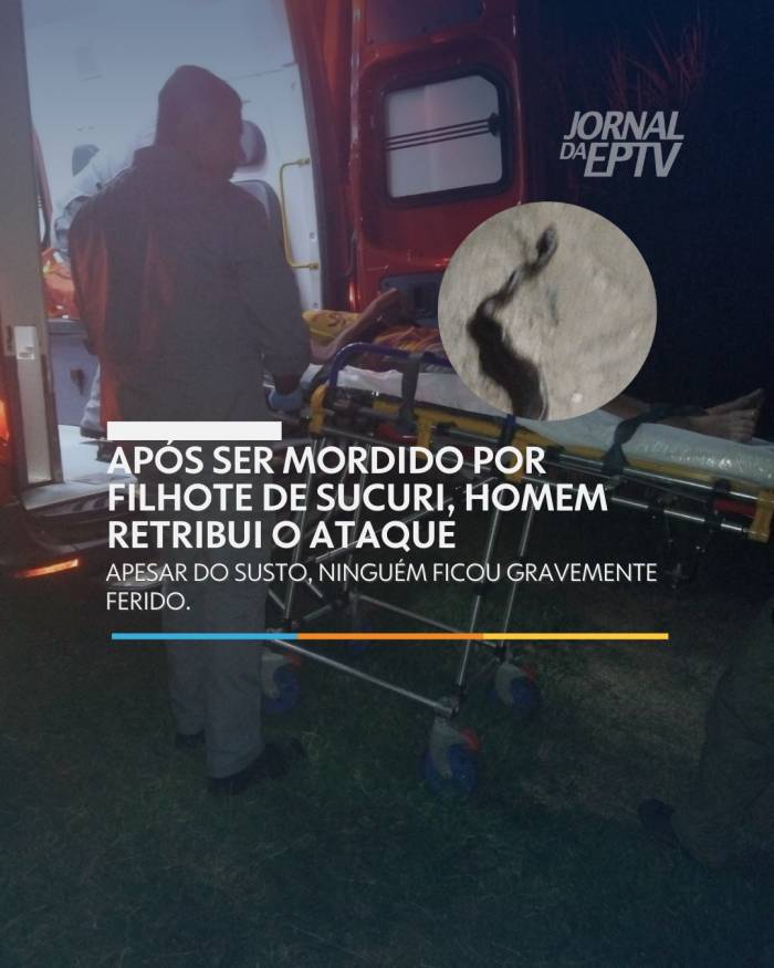 Por volta das 21h de segunda-feira (1), um homem foi picado por um filhote de sucuri no Recanto dos Pássaros, em Mococa. Ele estava embriagado e, no susto, retribuiu a mordida.
