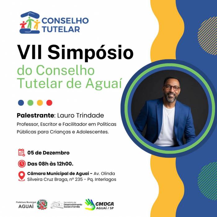 Nessa sexta-feira, 05, das 8h00 às 12h00, acontece na Câmara Municipal de Aguaí, o VII Simpósio do Conselho Tutelar. Participe!