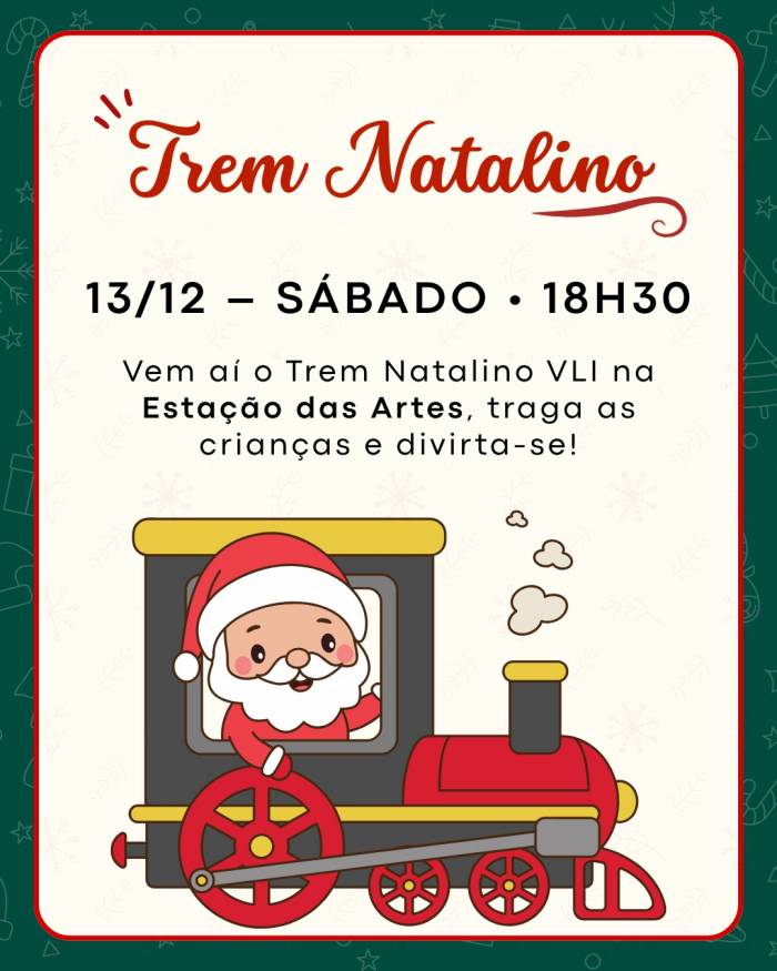 Vem aí o Trem Natalino da VLI!!! Sábado dia 13 as 18:30H na Estação das Artes em São João