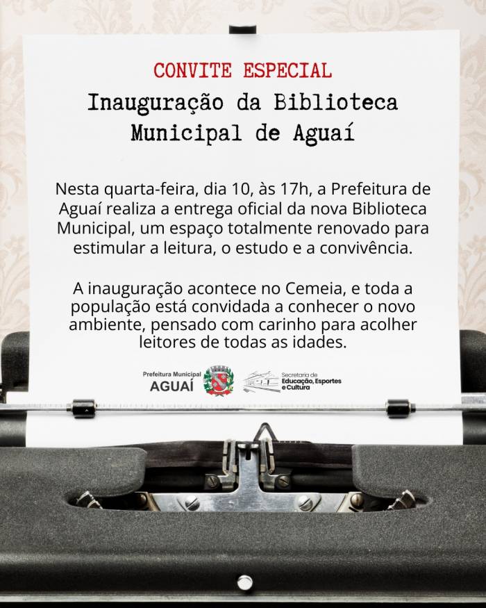Inauguração da Biblioteca Municipal de Aguaí na quarta-feira dia 10