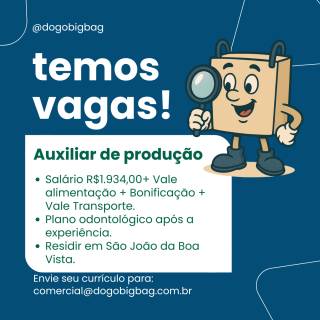 AMBOS OS SEXOS PARA ÁREA DE PRODUÇÃO. ENTREGAR CURRÍCULO PESSOALMENTE NA RODOVIA SP-342 KM231 - BAIRRO ALEGRE EM SÃO JOÃO DA BOA VISTA, VIA E-MAIL OU WHATSAPP