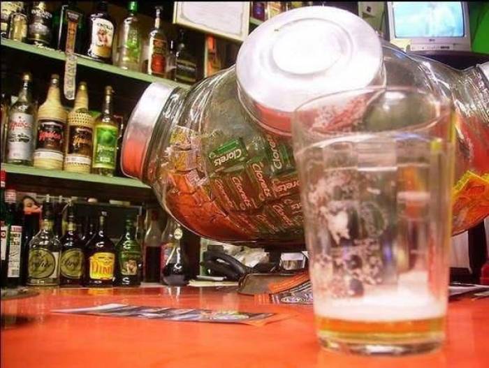 19h num bairro qualquer desta Sanja: eu e Josi, cabelos molhados e roupas úmidas, no antigo balcão da taberna lotada, sob o ruído da tempestade, sorvendo um litrão de Skol na companhia de copos americanos, amendoim torrado e gente que luta.