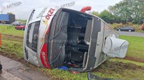 Micro-ônibus tomba na SP-340 em Mogi Mirim e 10 pessoas ficam feridas