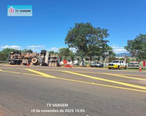 De acordo com informações apuradas pela TV Vargem, que esteve no local, o veículo havia sido carregado na cidade de Aguaí e seguia com destino a São Sebastião da Grama. No entanto, ao fazer a curva de acesso à rodovia, na altura do km 244, sentido Vargem, o motorista acabou perdendo o controle da direção, por motivos ainda a serem esclarecidos, o caminhão tombou, espalhando a carga pelo canteiro lateral.