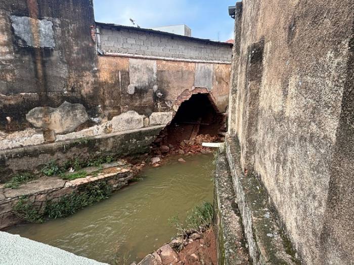 Segundo o relatório, o colapso de um muro de contenção na margem do córrego São João, agravado por um processo de erosão acelerado pelas chuvas recentes, resultou em risco iminente de desabamento de parte da edificação.