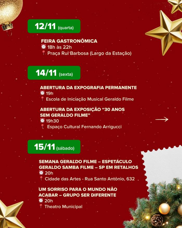 Realizada pela Prefeitura, por meio do Departamento de Turismo, a feira se consolida como um dos principais pontos de encontro da cidade, reunindo cerca de 60 expositores com o melhor da culinária local e regional. O clima festivo será garantido pelas apresentações do grupo Si Tivesse Dó e do cantor Michael Blue.mana Geraldo Filme