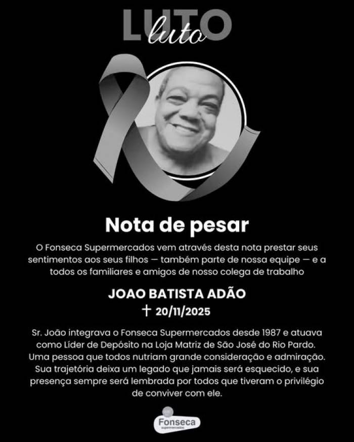 Fonseca Supermercados lamenta morte de João Adão