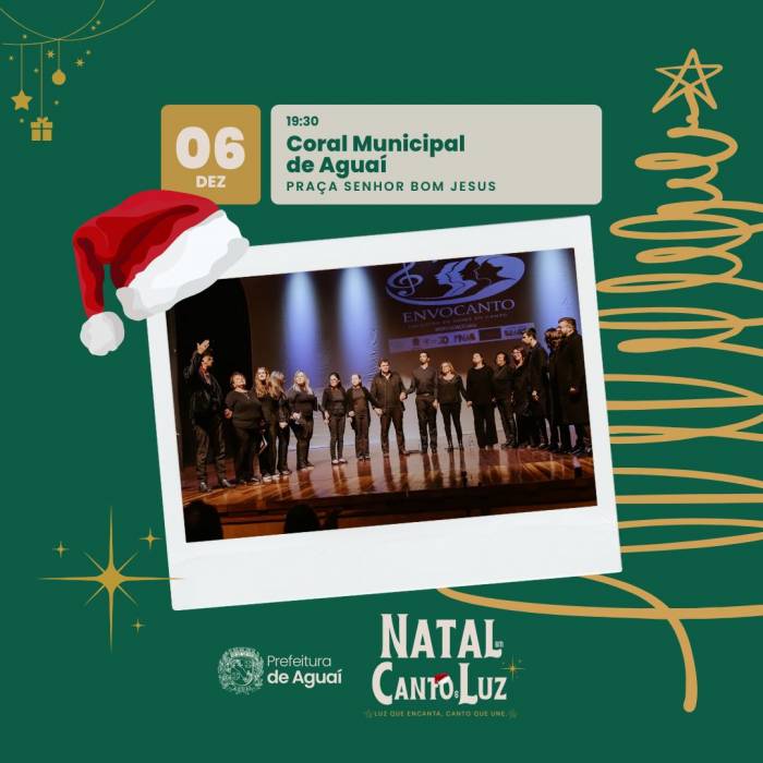 A programação de Natal continua. Nesse sábado quem se apresenta no Calçadão da Praça Central é o Coral Municipal de Aguaí.