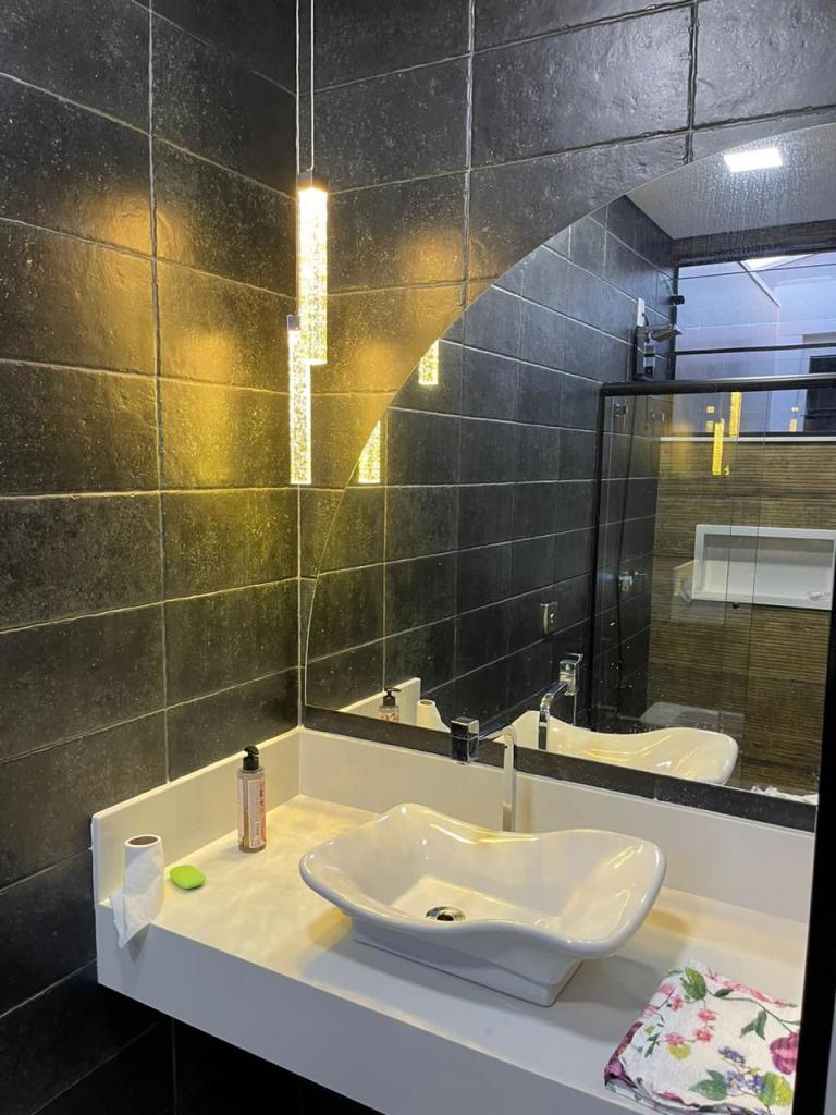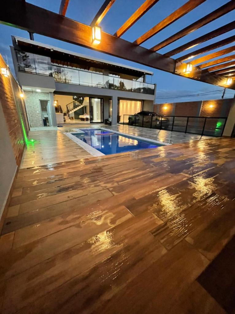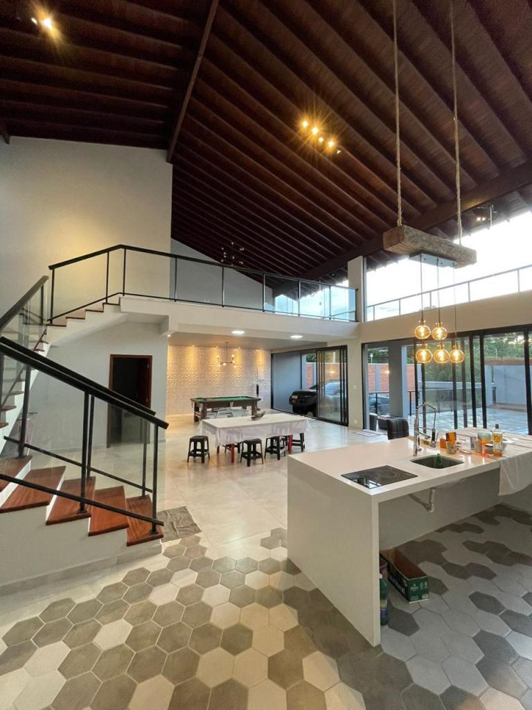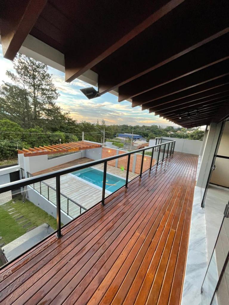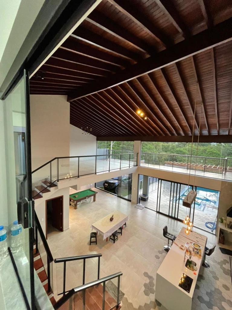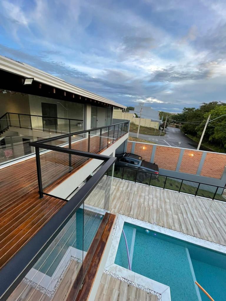 3 suites com ar condicionado, pé direito 8 metros, deck, pergolado, churrasqueira,piscina, 5 banheiros, 2 garagens, alarme, câmeras, mesa de sinuca. Aceita terreno em Jundiaí ou Campinas