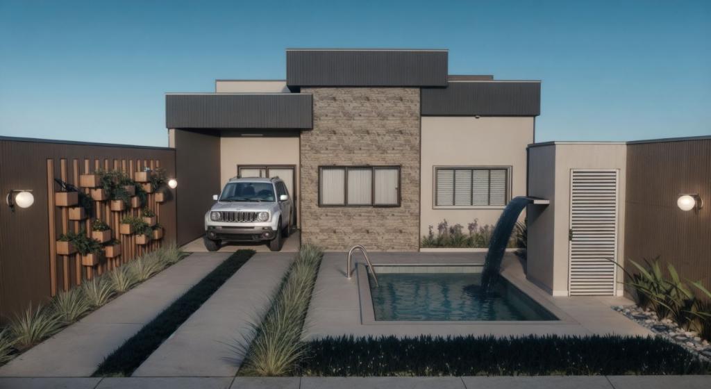 Casa térra nova com 2 dormitórios, sala com pé direito duplo, 2 banheiros, área gourmet e piscina. Garagem para 2 carros