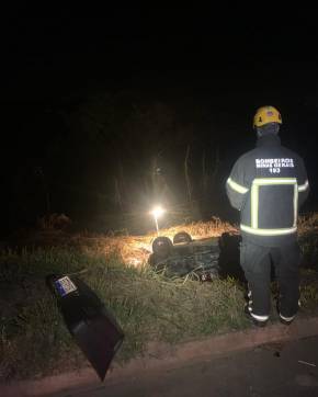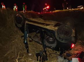 O impacto da batida foi tão forte que o Fiat Uno saiu da pista, capotou e parte dos ocupantes foram arremessados.