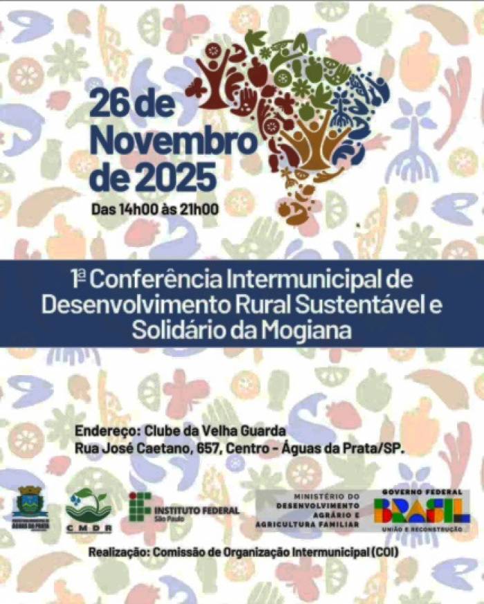 Águas da Prata será palco, no dia 26 de novembro de 2025, de um dos momentos mais importantes da construção participativa das políticas públicas para o campo no Brasil. A cidade realiza a 1ª Conferência Intermunicipal de Desenvolvimento Rural Sustentável e Solidário da Mogiana. O encontro compõe o processo de reconhecimento e futura homologação do Território da Mogiana, reunindo gestores públicos, agricultores familiares, entidades locais e lideranças regionais.